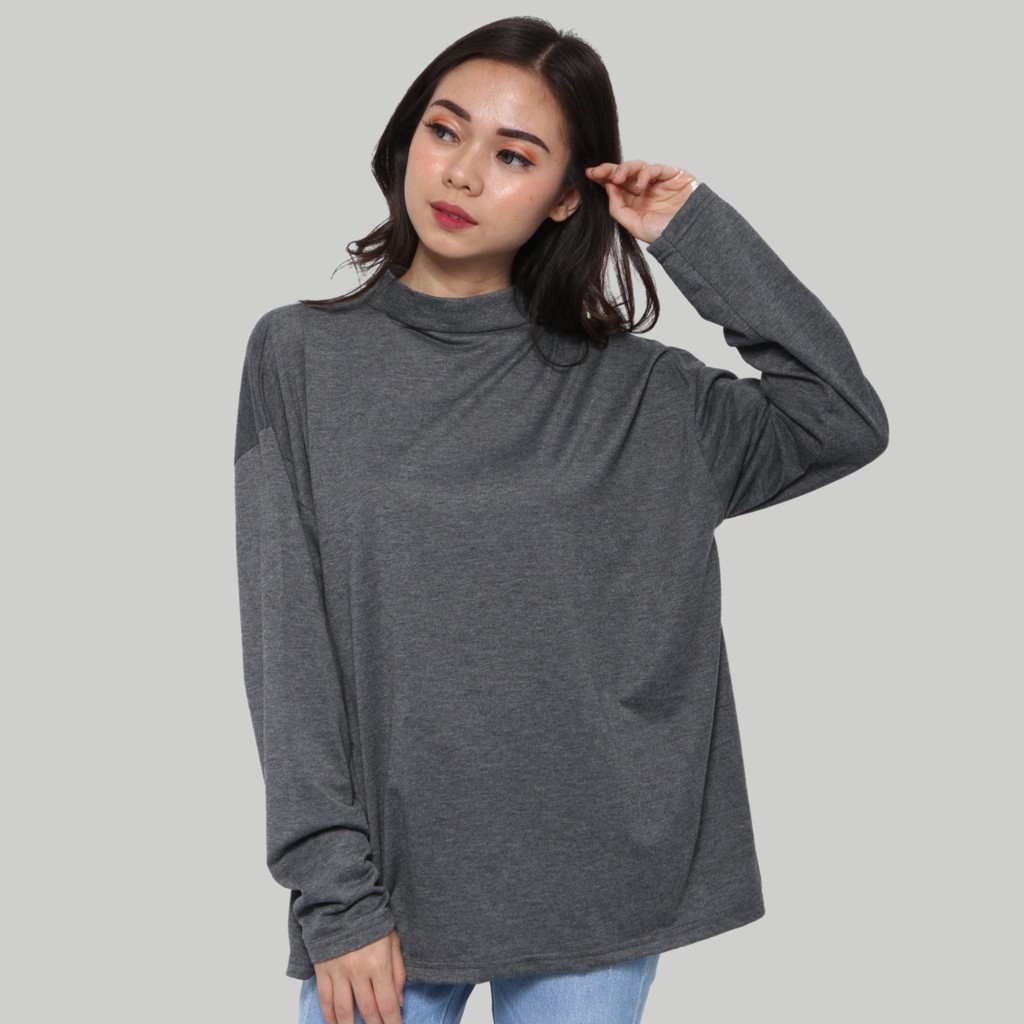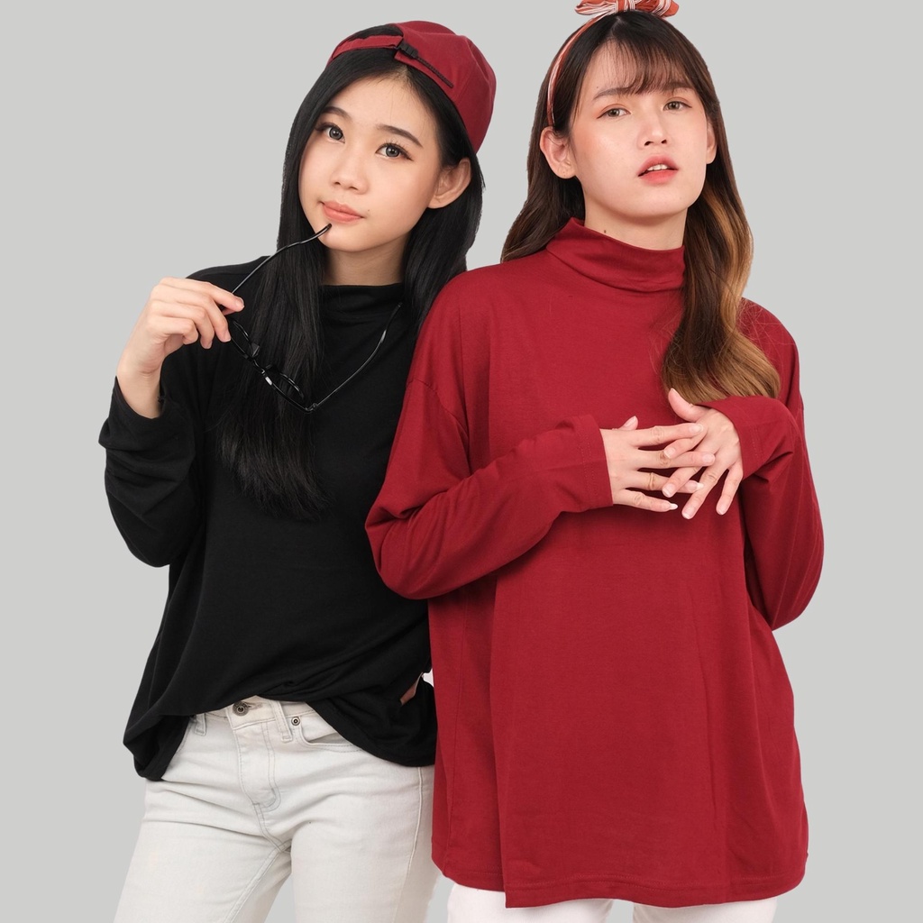 Monellina MANSET Kaos Oversize Wanita Lengan Panjang Turtleneck