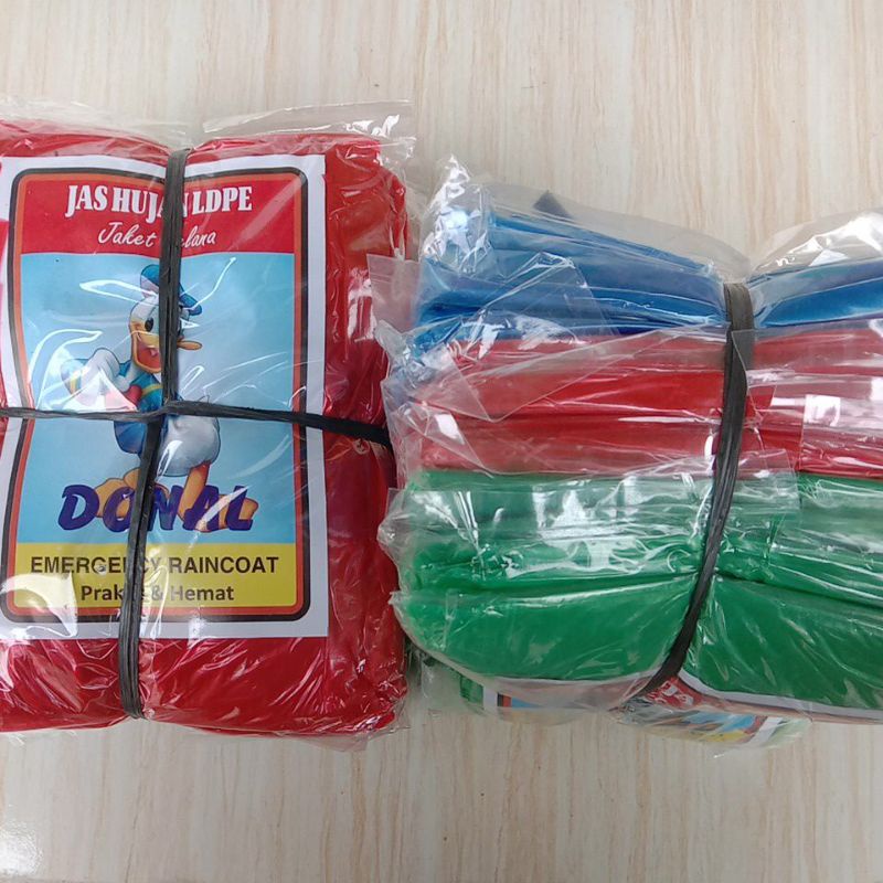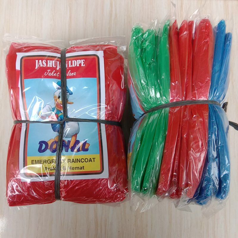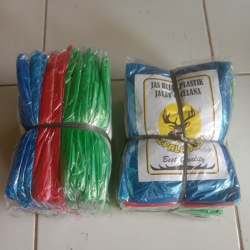 (12Pcs) Kepala Rusa Jas Hujan Plastik Jaket Celana Setelan LDPE Mantol Mantel Murah Grosir Lusin