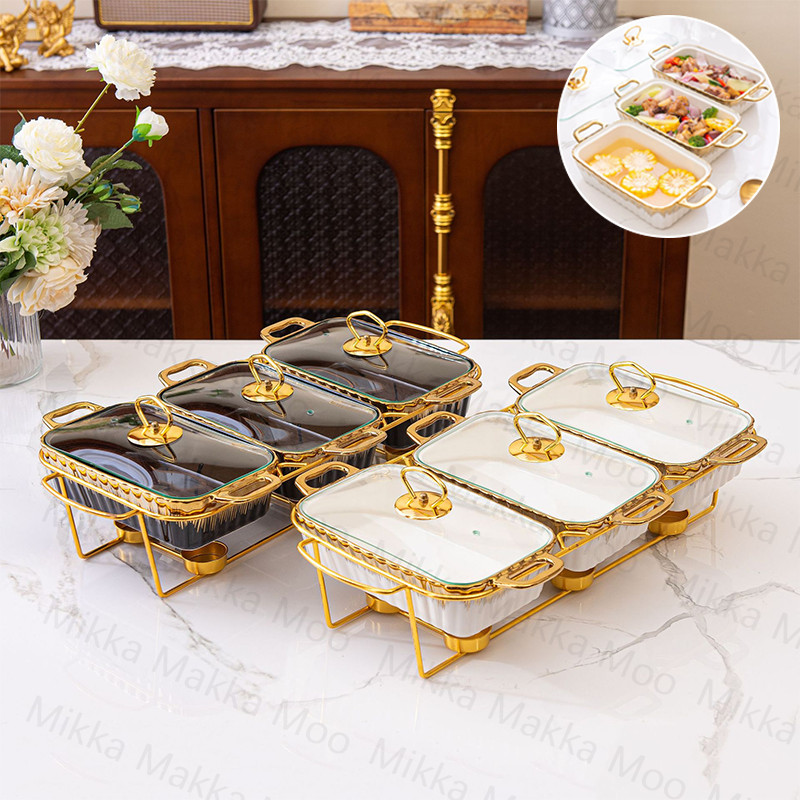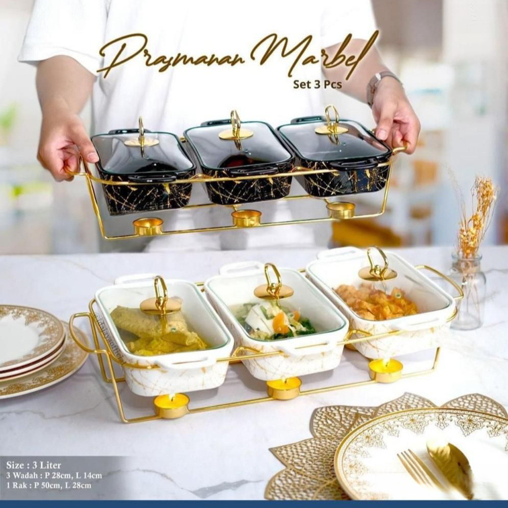 PRASMANAN SULTAN 3in1 Tempat Prasmanan Gandeng Keramik 1L | Rak Besi Emas - Wadah Makan Mewah & Aesthetic