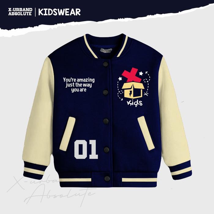 JAKET VARSITY ANAK UNISEX K080 - X-URBAND OFFICIAL - NAVY CREAM, S
