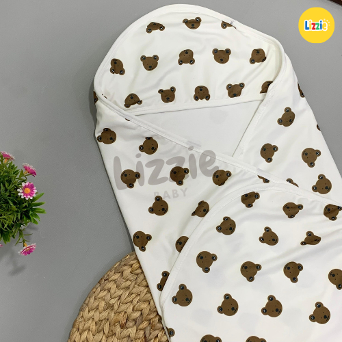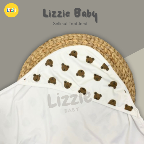 Lizzie Baby - Selimut Bayi Topi Bahan Halus Katun Motif Ber Coklat Dan Karakter Lucu