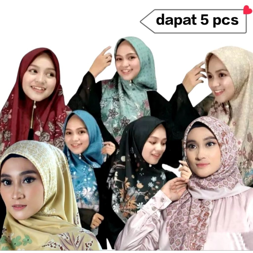 DAPAT 5PCS Jilbab Zipper Resleting Premium Hijab Ziper Kerudung Resleting Segi Empat Azara Voal Motif Terbaru