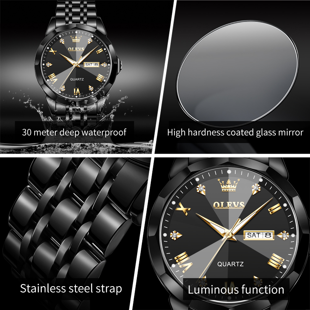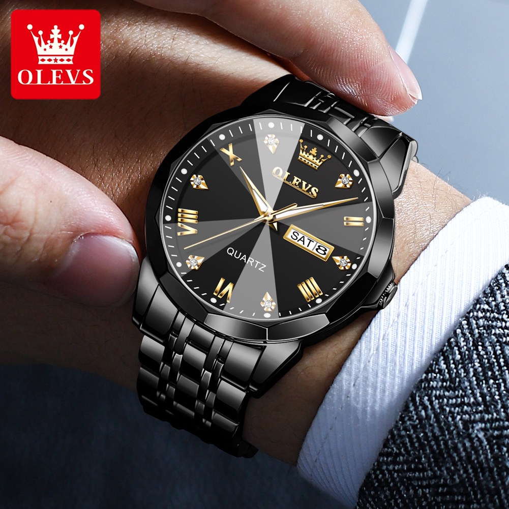OLEVS Jam Tangan Pria Anti Air Original Rantai Keren Mewah Hitam Luxury Stainless Steel Watch Men 9931