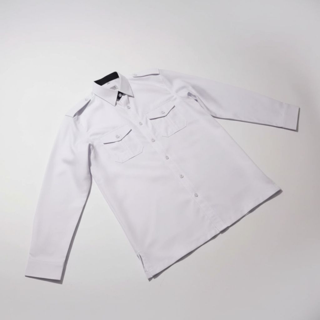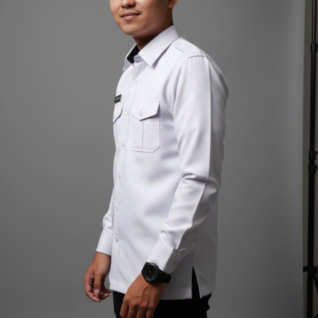 Kemeja PDH Putih Pria Premium Lengan Panjang Bahan Semi Wooll Adem Lembut Ukuran S-XXL