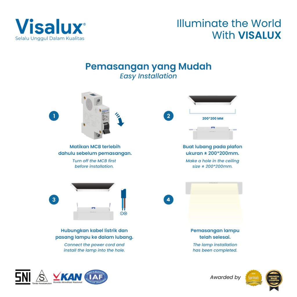 Visalux Tetra LED Panel Light Inbow Bundling Paket 4 pcs Lampu Plafon Rumah Downlight 24W 8 Inch Square 3000K/6500K (VPL8324)