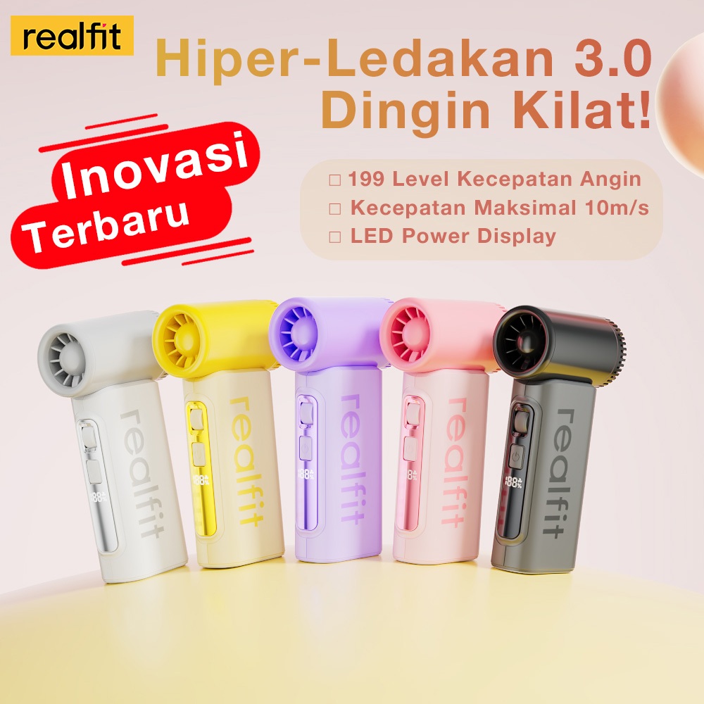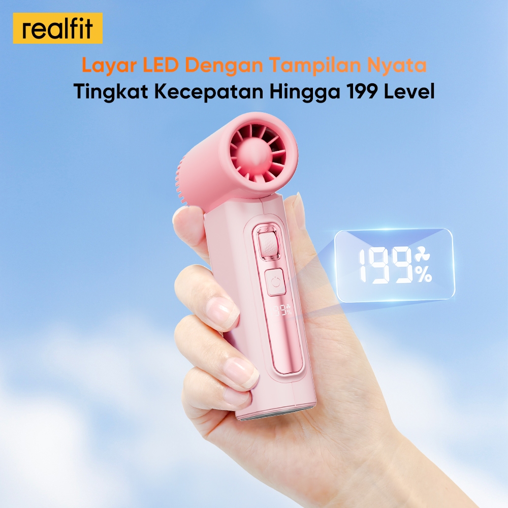[ Baru Tiba ] Realfit T1 Kipas Tangan High Speed 199 Tingkat Kecepatan Angin Portable Turbo Kipas Mini Rechargeable