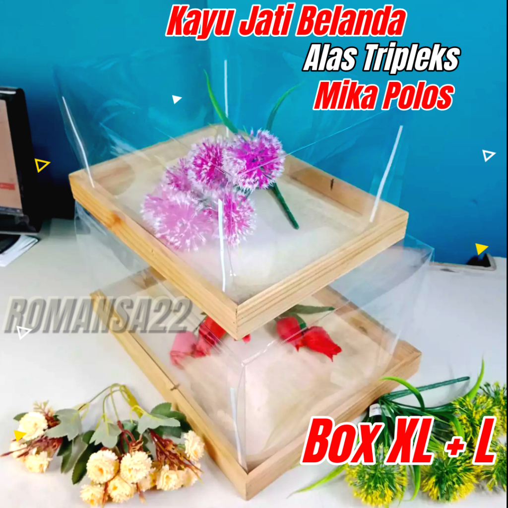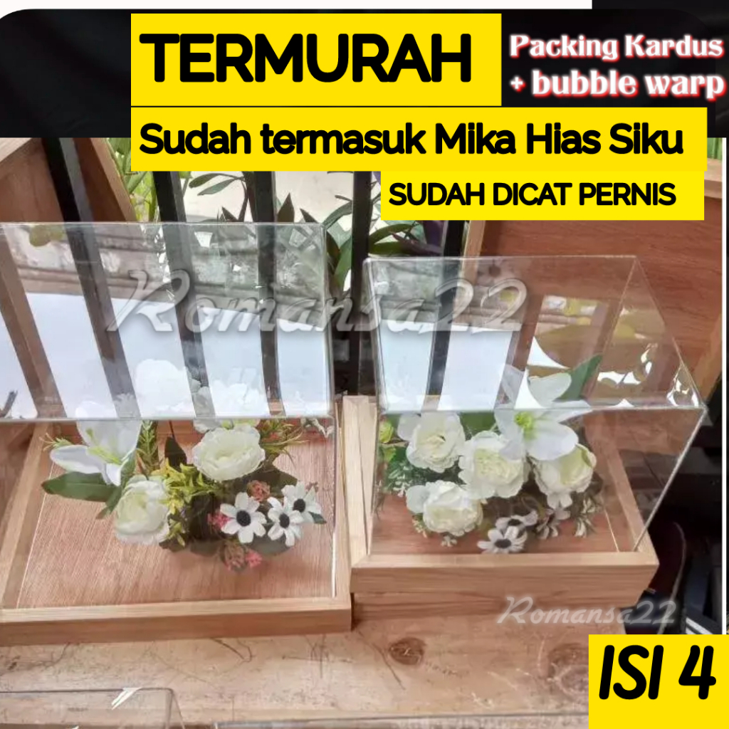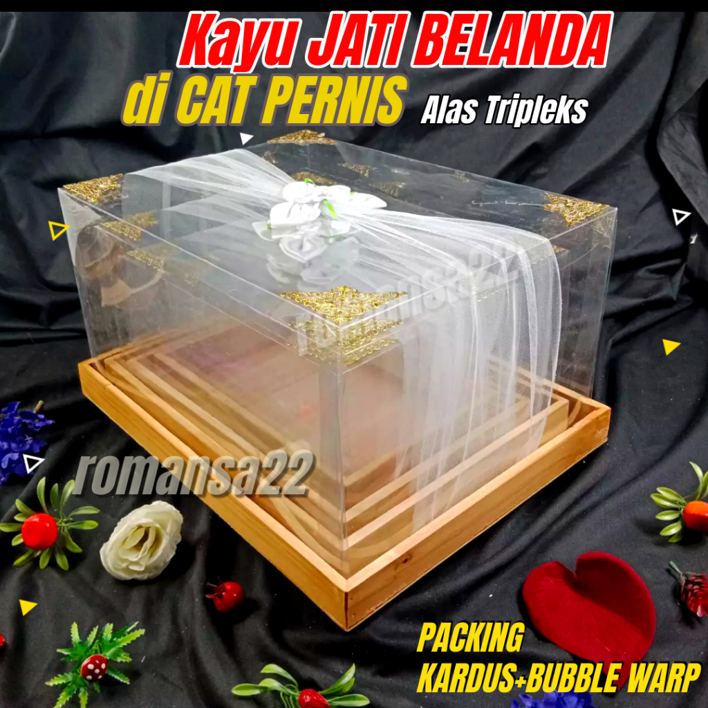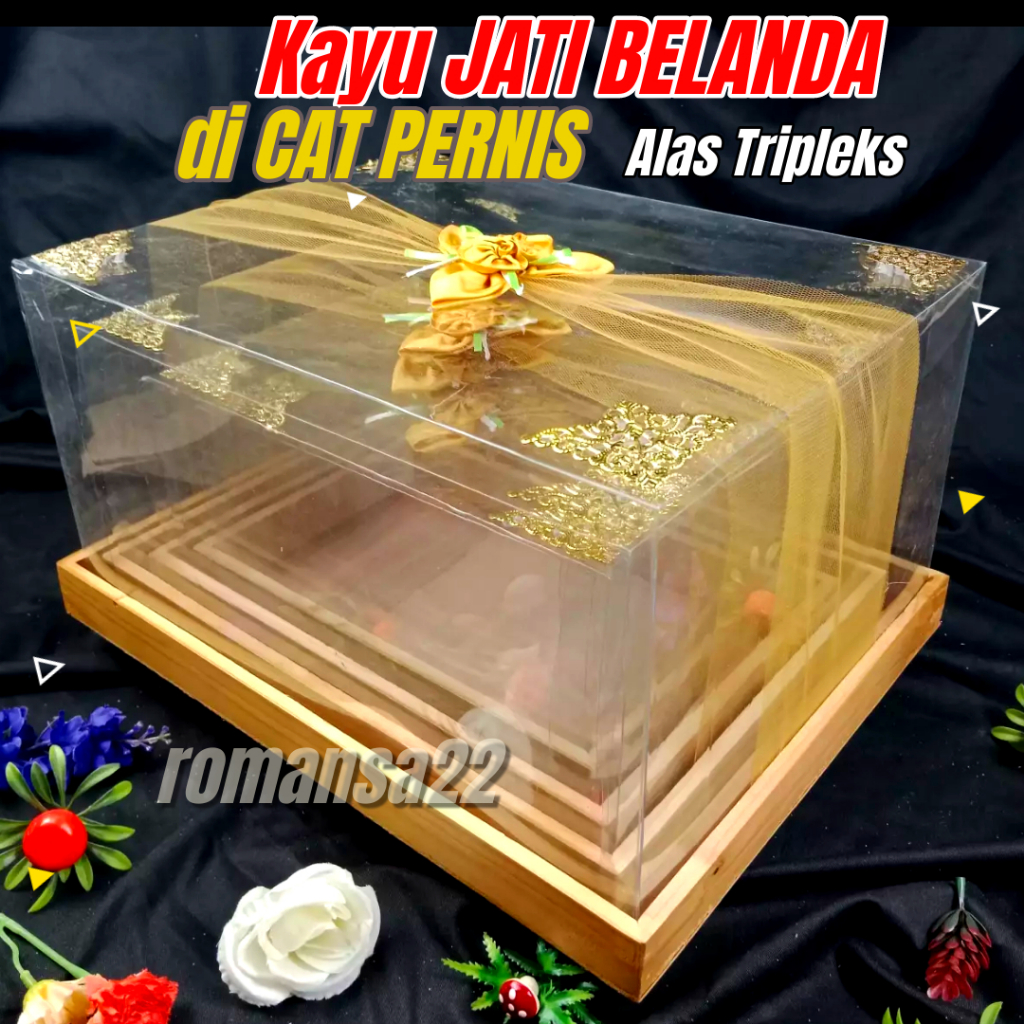 Box Seserahan KAYU JATI BELANDA Kotak Hantaran Pernikahan PLUS TUTUP MIKA HIAS KAIN TILE SATIN ISI 4