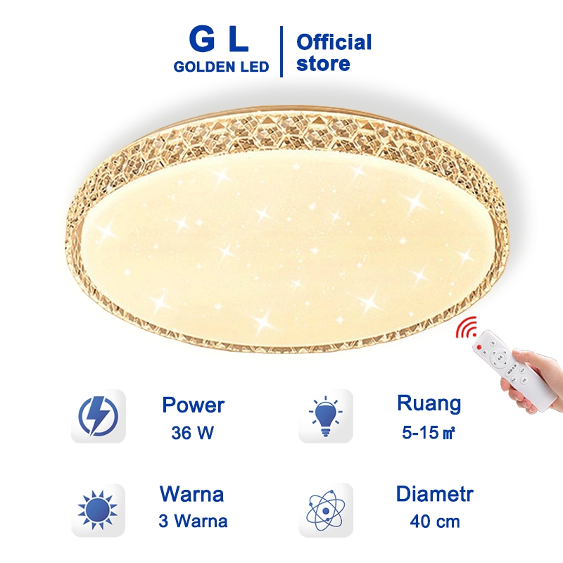 GL Lampu Kristal LED Ceiling Plafon 3 Warna 40 Watt Bulat Satu Tingkat Untuk Ruang Tamu/Kamar Tidur/Dapur