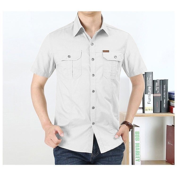 Komara Store Kemeja Pendek Pria Bahan Cotton Baby Canvas Lengan Pendek Casual Dewasa Keren Formal Cowok Size M-5XL Ready