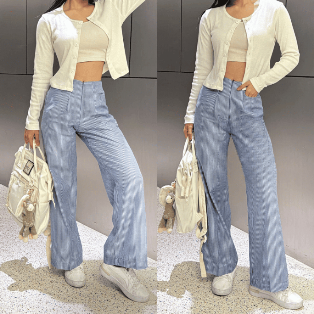 Terlaris Pants city Celana Panjang Wanita Kantor Kuliah Motif Garis salur Kulot Pinstripe terbaru 2025