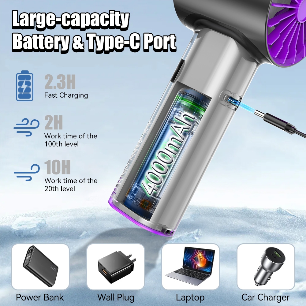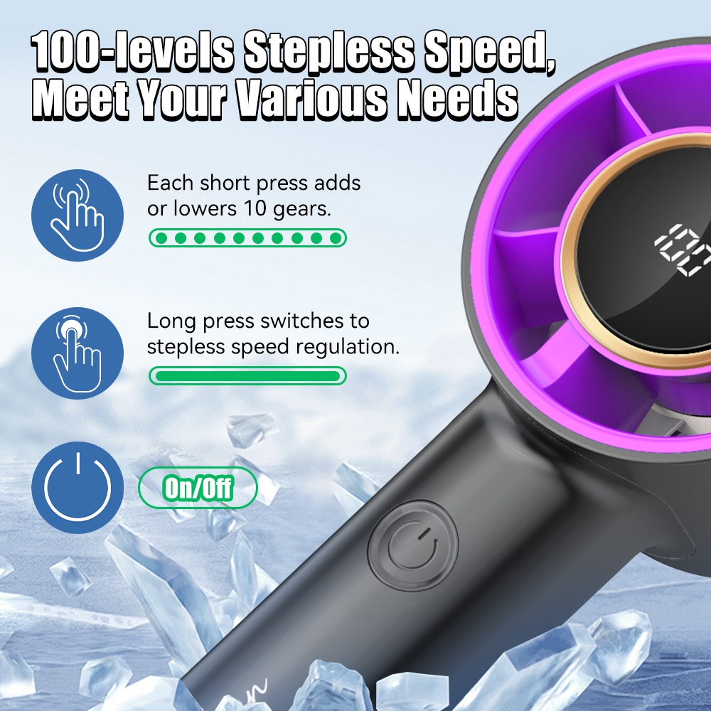 DANYCASE Mini kipas Strong Wind 100 Gear Wind Speed kipas angin Digital Display Adjustable Turbo kipas tangan untuk olahraga luar ruangan dan pendinginan cepat