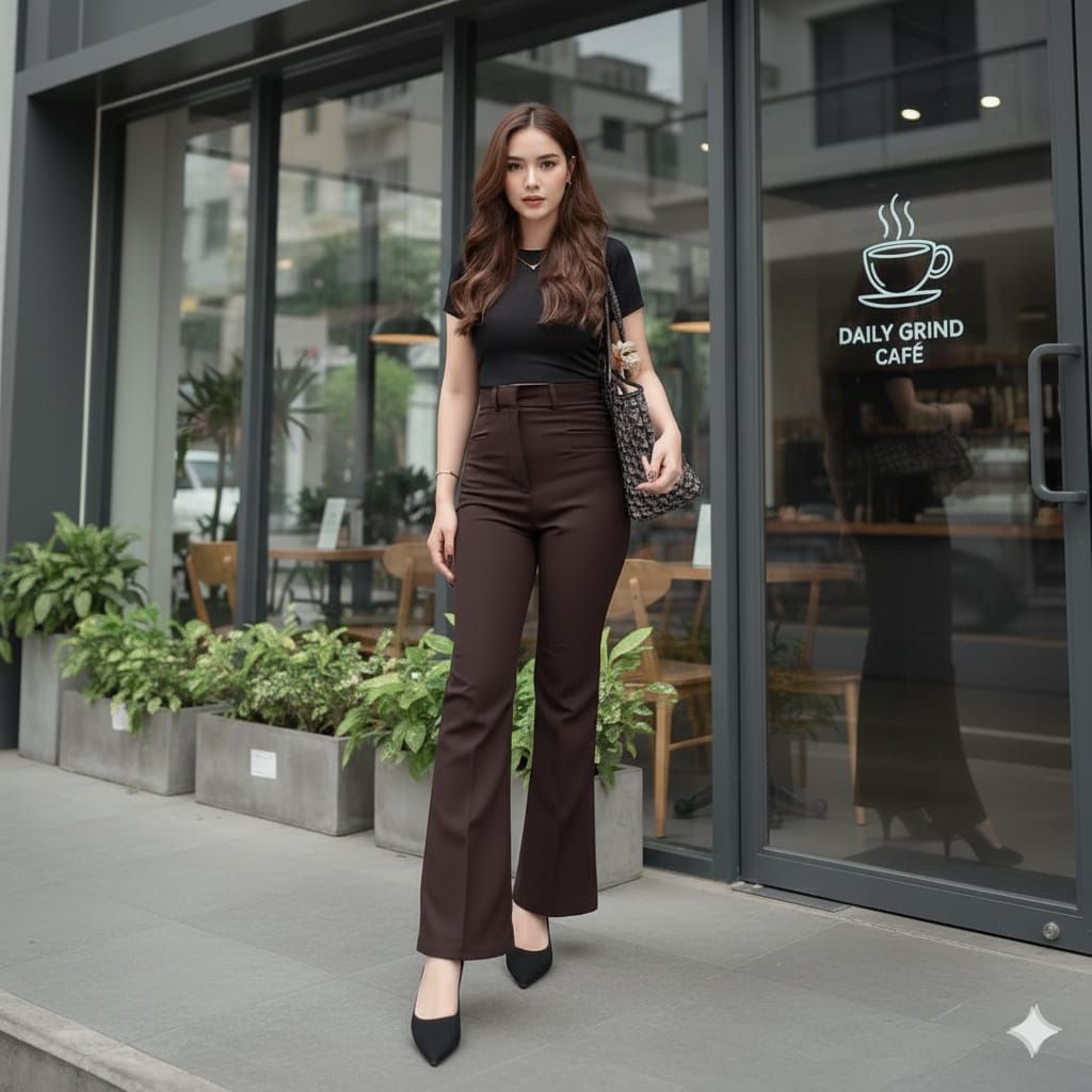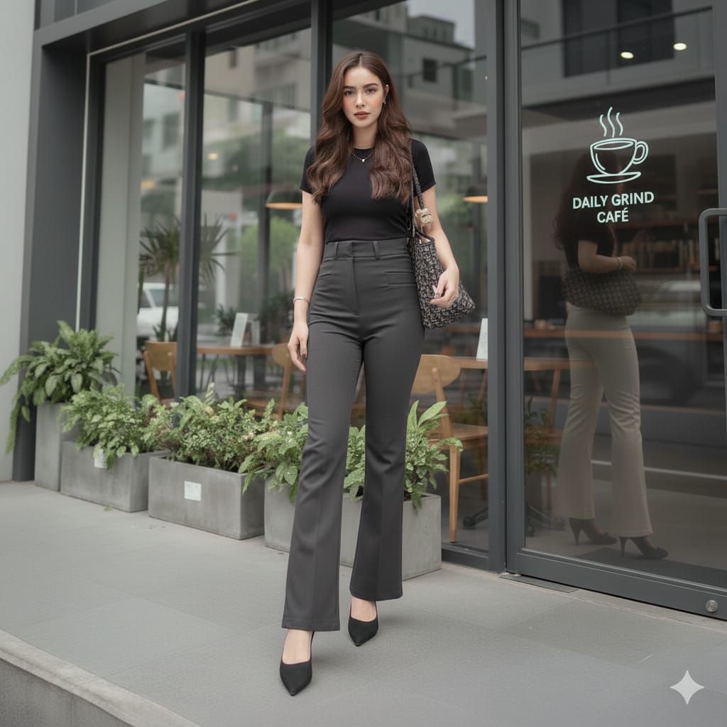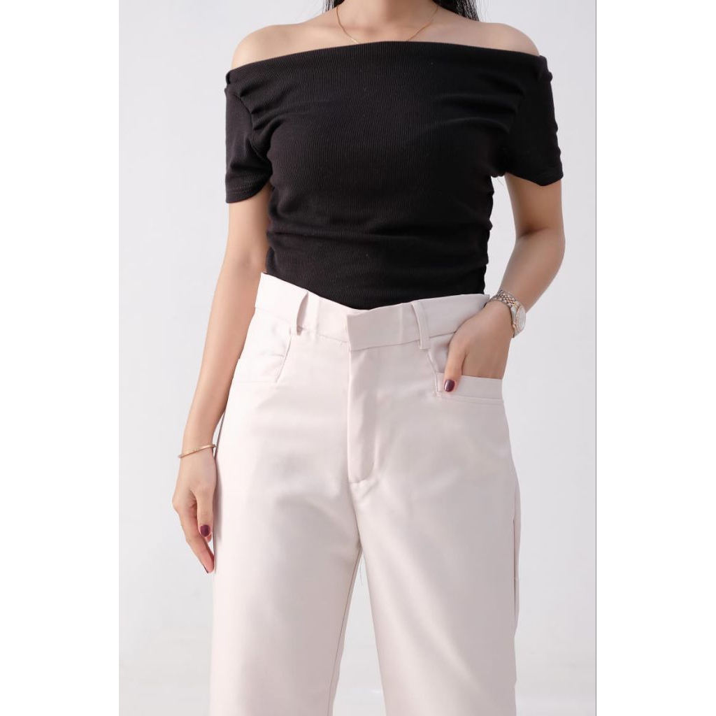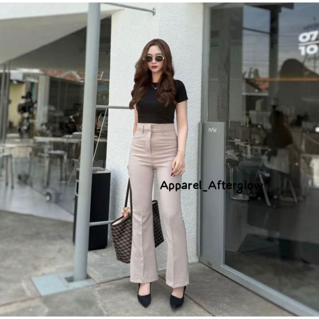 Kylie Highwaist Pants Wanita Celana Cutbray Flare Anti Kusut Bahan Semi Woll Premium