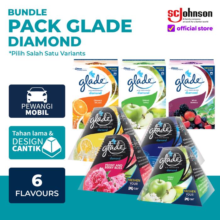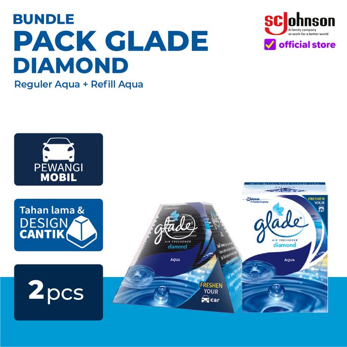 (BUNDLE PACK) GLADE DIAM0ND - GLADE DIAM0ND REGULER + GLADE DIAM0ND REFILL - PENGHARUM MOBIL - GLADE DIAM0ND REGULER AQUA + REFILL AQUA