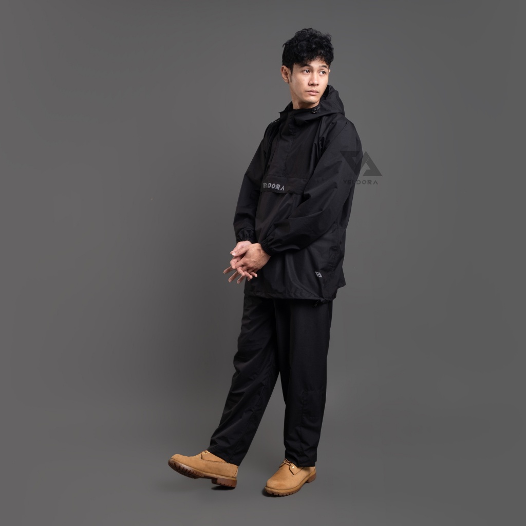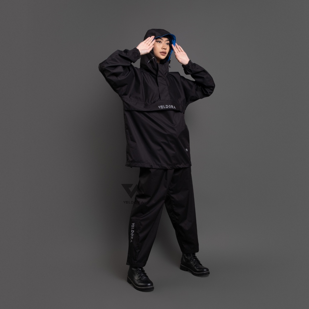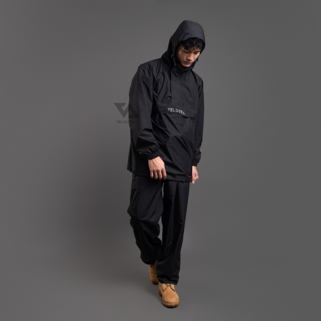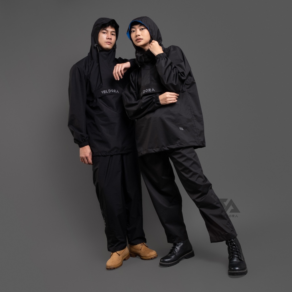 VELDORA - Jas Hujan Mantel Pria dan Wanita Dewasa Alpha Series Hitam