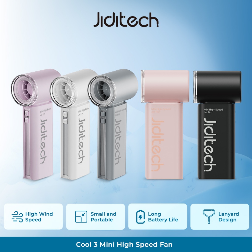 JIDITECH Cool3 Kipas Mini Angin Super Kencang Turbo 5 Speed Mode 3000mah Garansi 1 Tahun Free Lanyard