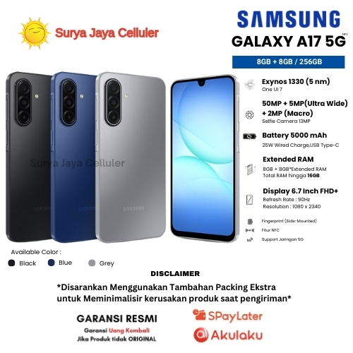Samsung Galaxy A17 5G 8/256GB,A17 4G 8/256GB,A17 4G 8/128GB (Garansi Resmi 1 Tahun)