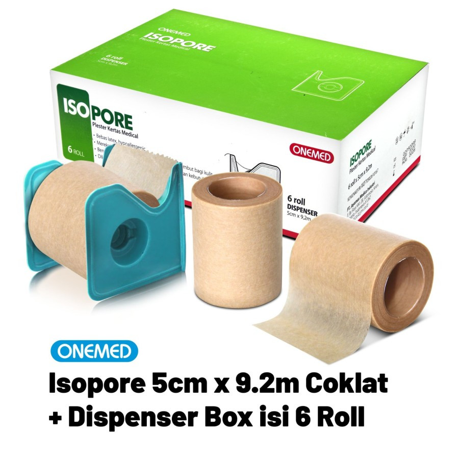 ONEMED Isopore Coklat 5cm x 9,2m + Dispenser Plester Kertas Box isi 6 Roll OOF