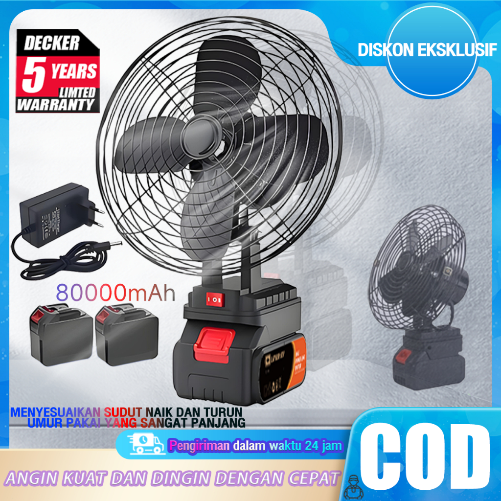 DECKER ✅ Kipas baterai lithium nirkabel 8 Inch Fan Portable Baterai Kipas Portable Cordless Kipas Berkemah kipas emergency Mini Fan Socket Camping Lithium Bateri Kipa Kipas yang bisa disesuaikan