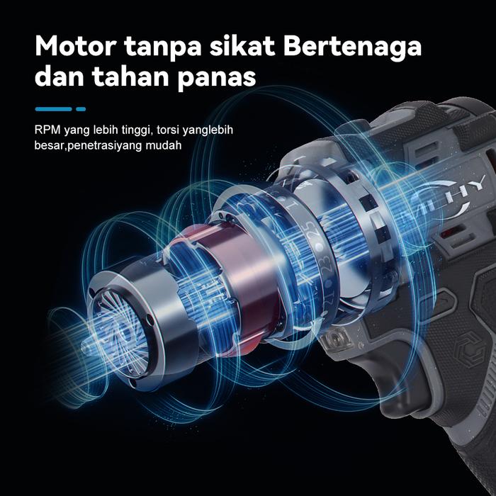 MLHY Brushless Drill 70NM Bor Listrik 2-in-1 obeng listrik cordless impact 3mode bor 10mm Clevis