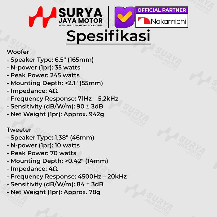 Nakamichi NSF-CS623 6.5 Inch Speaker Split 35W RMS 225W Peak Power 2-way Speaker Audio Mobil