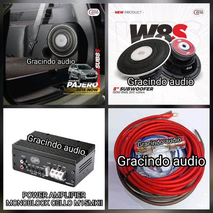 Subwoofer Cello W8S Box PNP Mitsubishi Pajero 2016-2025 plus Power Monoblok dan Kabel Set