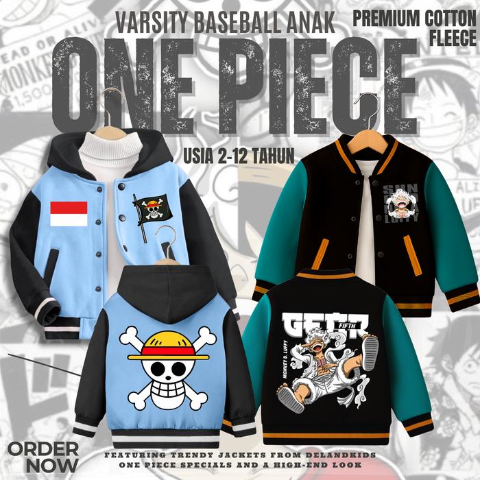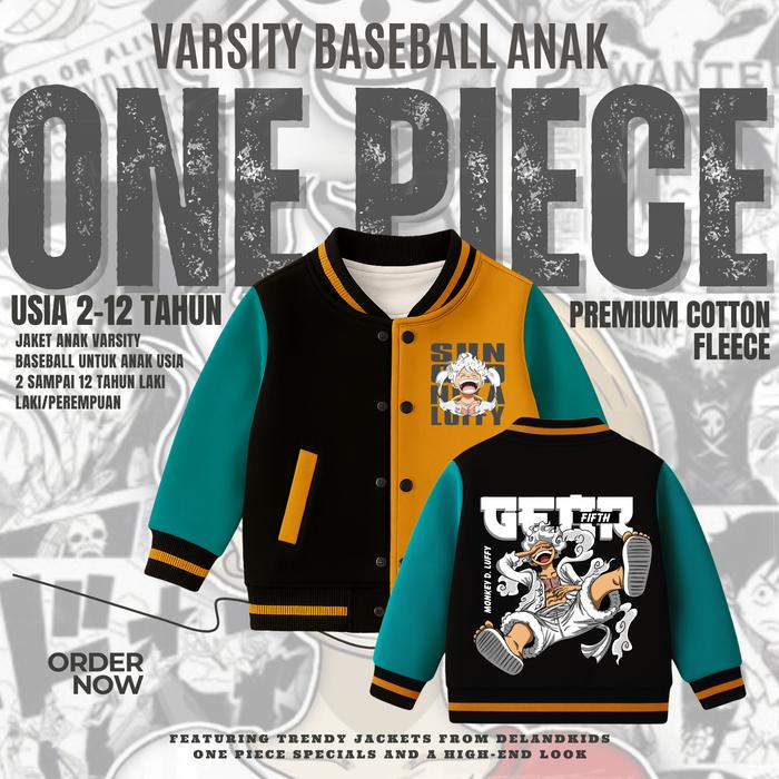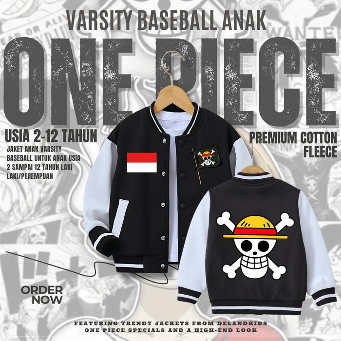 VARSITY BASEBALL ANAK ONE PIECE JAKET VARSITY BASEBALL ANAK LAKI-LAKI/PEREMPUAN USIA 2-12 TAHUN FASHION - BASEBALL HITAM, M (2-3 TAHUN)