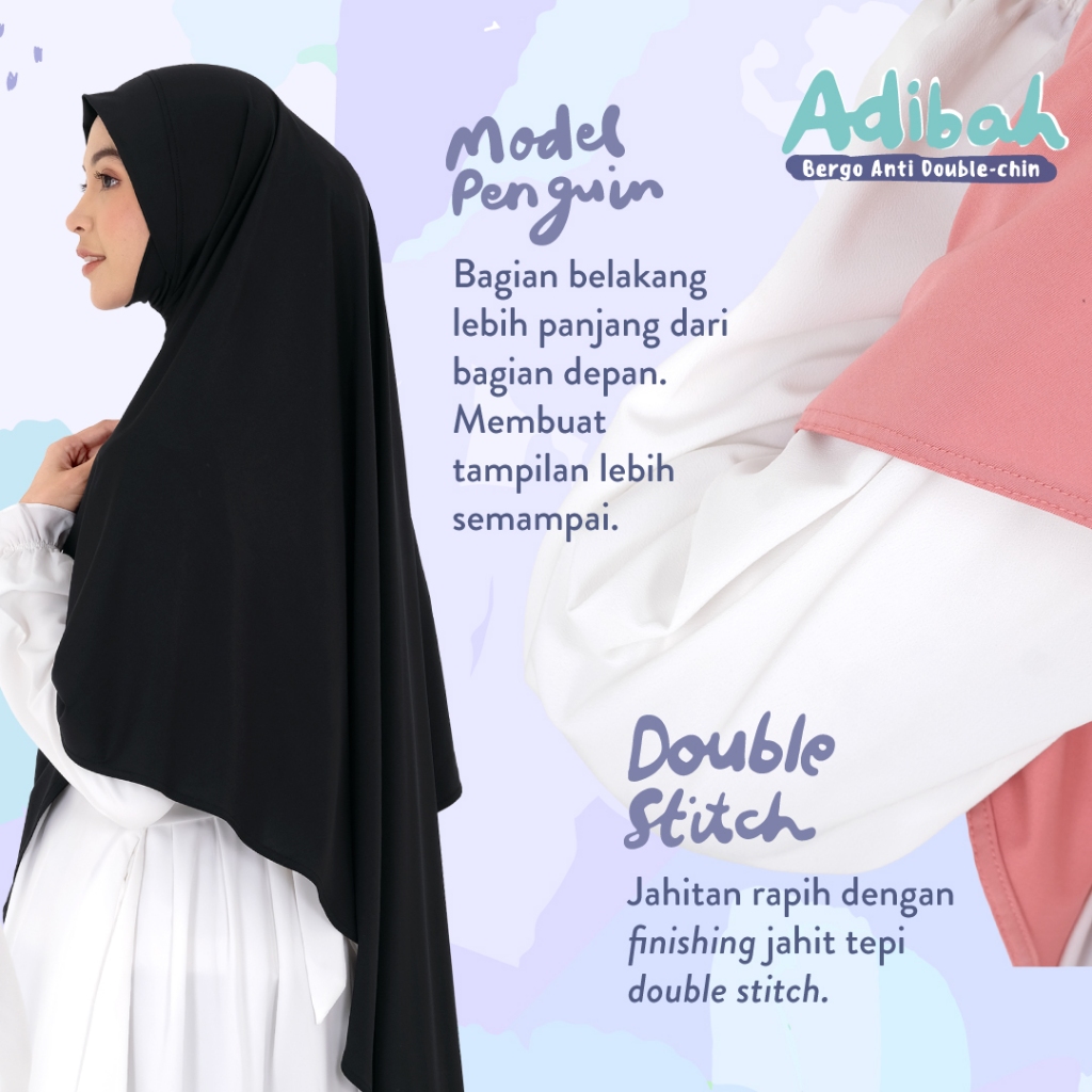 Jilbab Afra Arfa Adiba Bergo Dagu Malay Malaysia Premium Ukuran M L XL