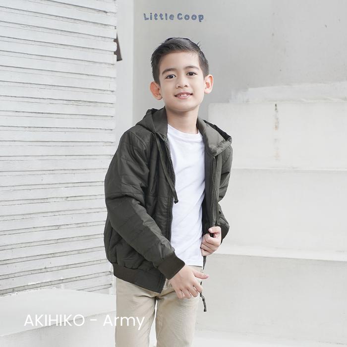 LITTLE COOP - AKIHIKO JAKET ANAK LAKI-LAKI DENGAN HOODIE - ARMY, 4