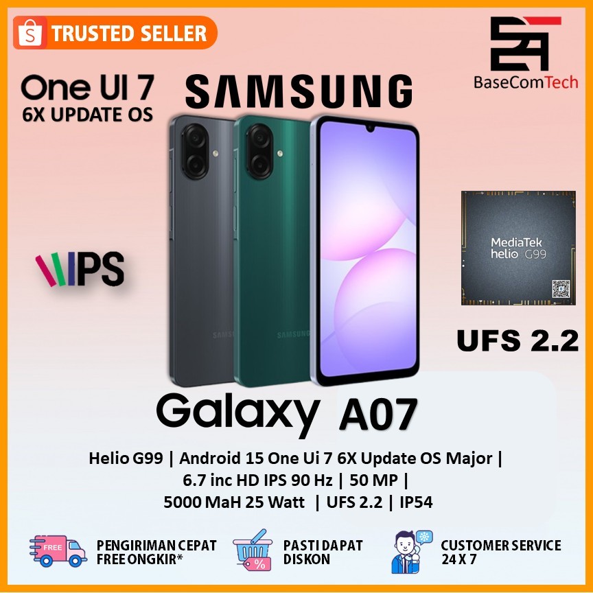 Samsung Galaxy A07 4G Mediatek Helio G99 SECURED BY KNOX | 6.7 Inc FHD 90Hz Resmi SEIN