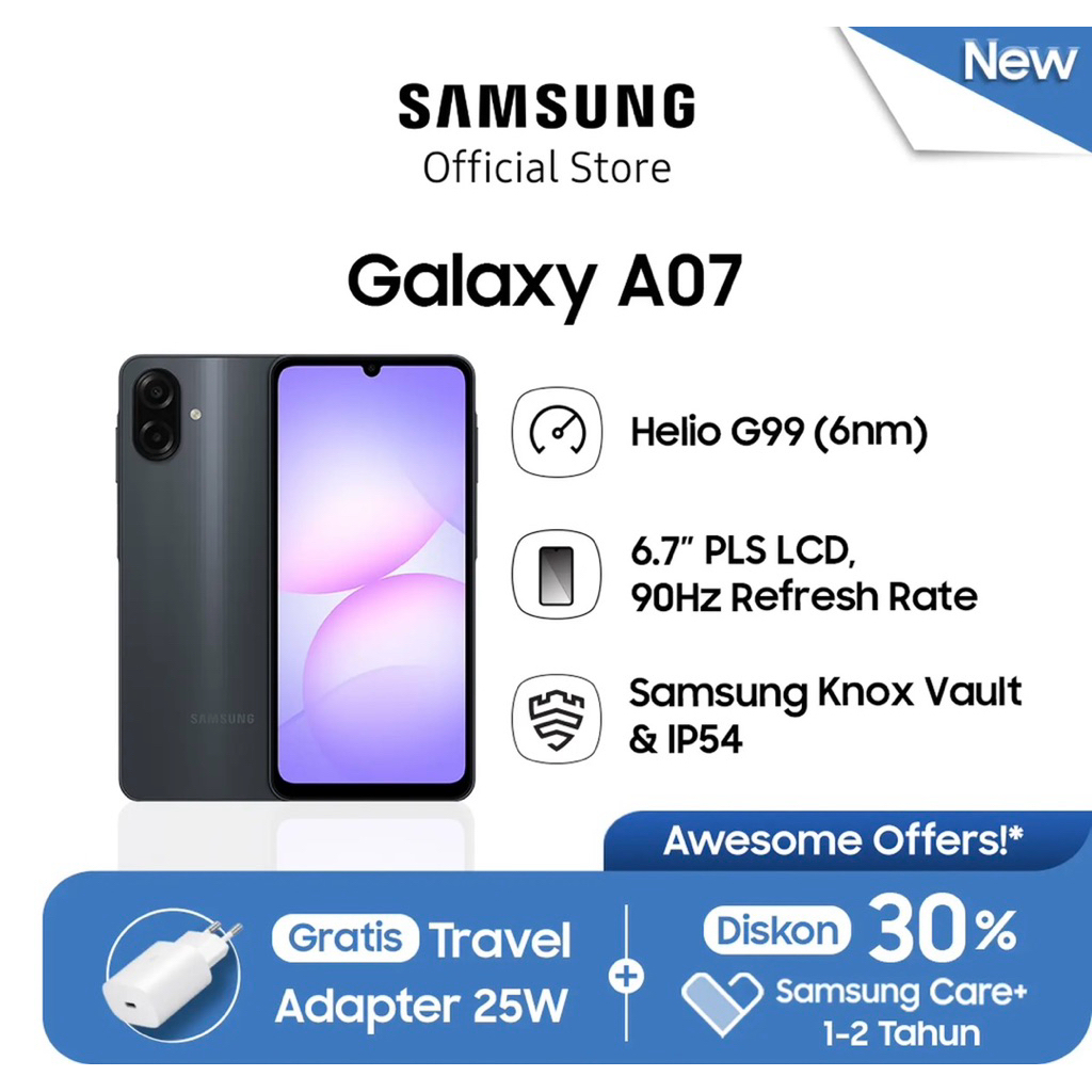Samsung Galaxy A06 / A07 4+64GB / 4+128GB / 6+128GB | +Travel Adaptor garansi resmi