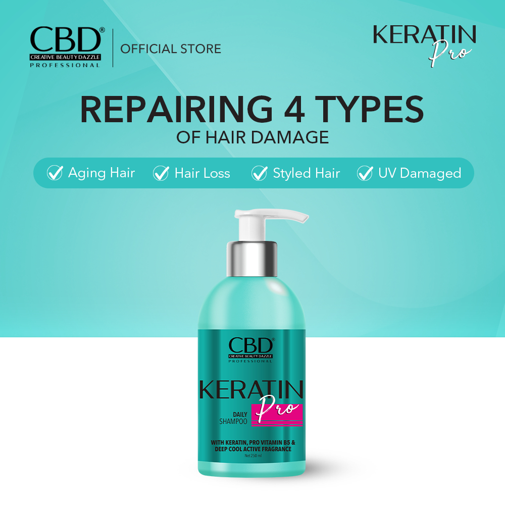 CBD Professional Keratin Pro Daily Shampoo 250ml | Perawatan untuk rambut anti kering dan kusut | Rambut rusak | Rambut