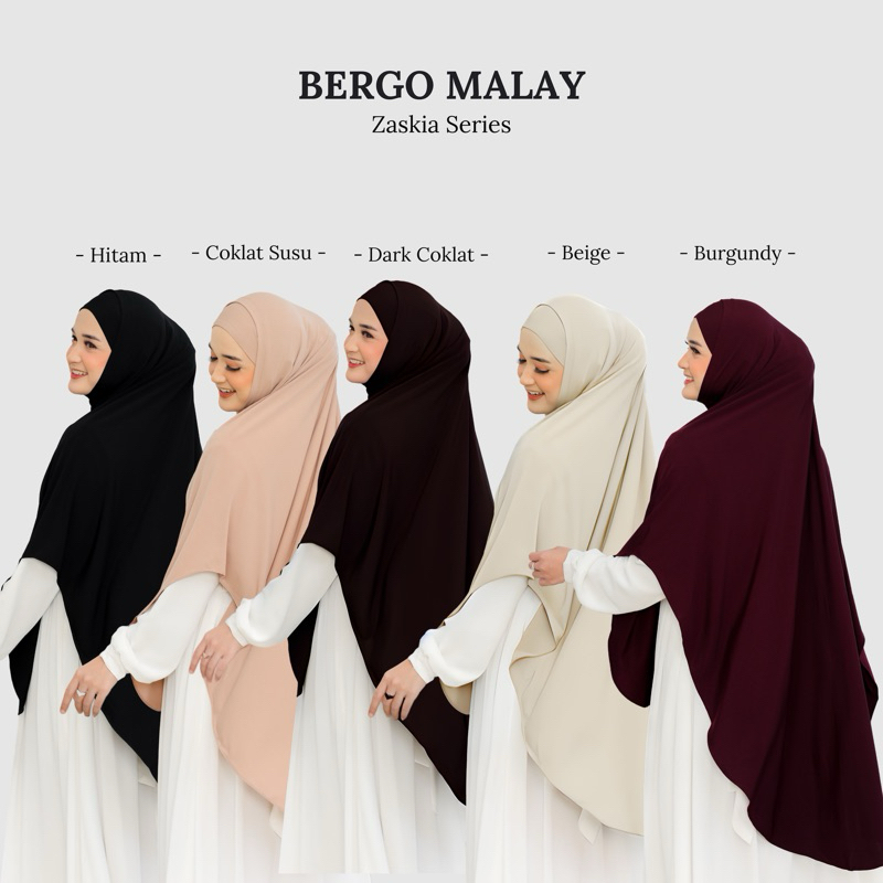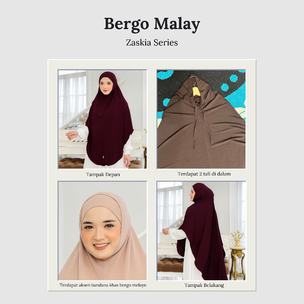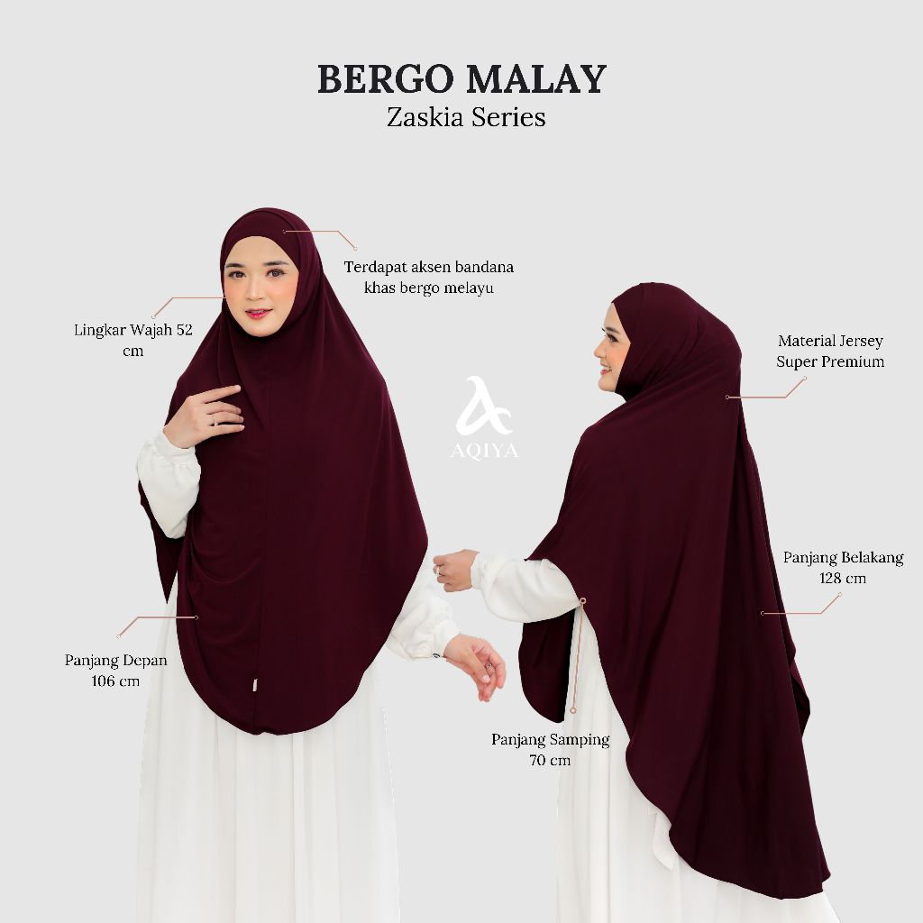 AQIYA BERGO MALAY PREMIUM TERBARU ZASKIA Khimar Kerudung Hijab Soft Inner Tali Antem Syari