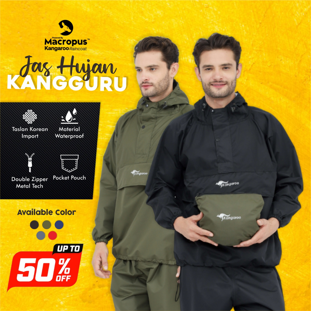 KANGAROO RAINCOAT Jas Hujan Kangguru Anti Rembes Premium Mantel Pria Dewasa Kanguru Jaz Hujan Wanita Jas Ujan Setelan Kanguru Twins Diora Jas Ujan Sndr Peakglory