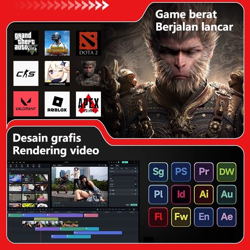 Paket Lengkap PC Gaming Full Set + Monitor — Siap Main GTA V5/Wukong/Genshin Impact/Valorant/Call of Duty/Dota 2 & Cocok untuk Desain Kantor