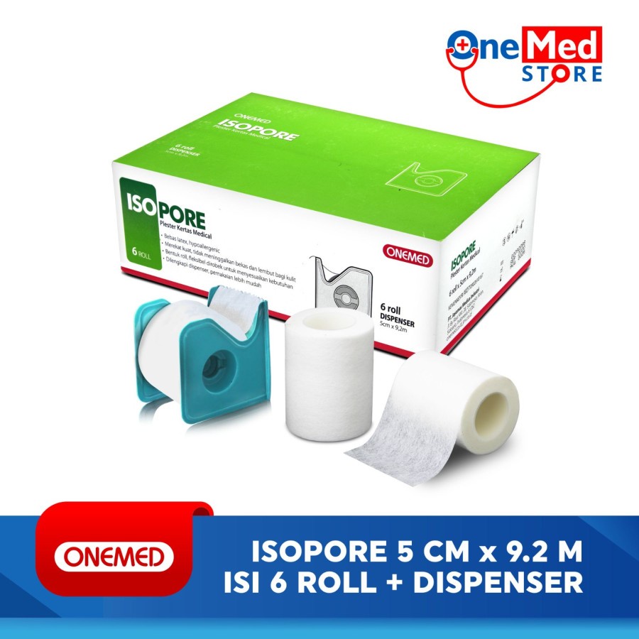 ONEMED Isopore 5cm x 9,2m + Dispenser Plester Kertas Box isi 6 Pcs OOF