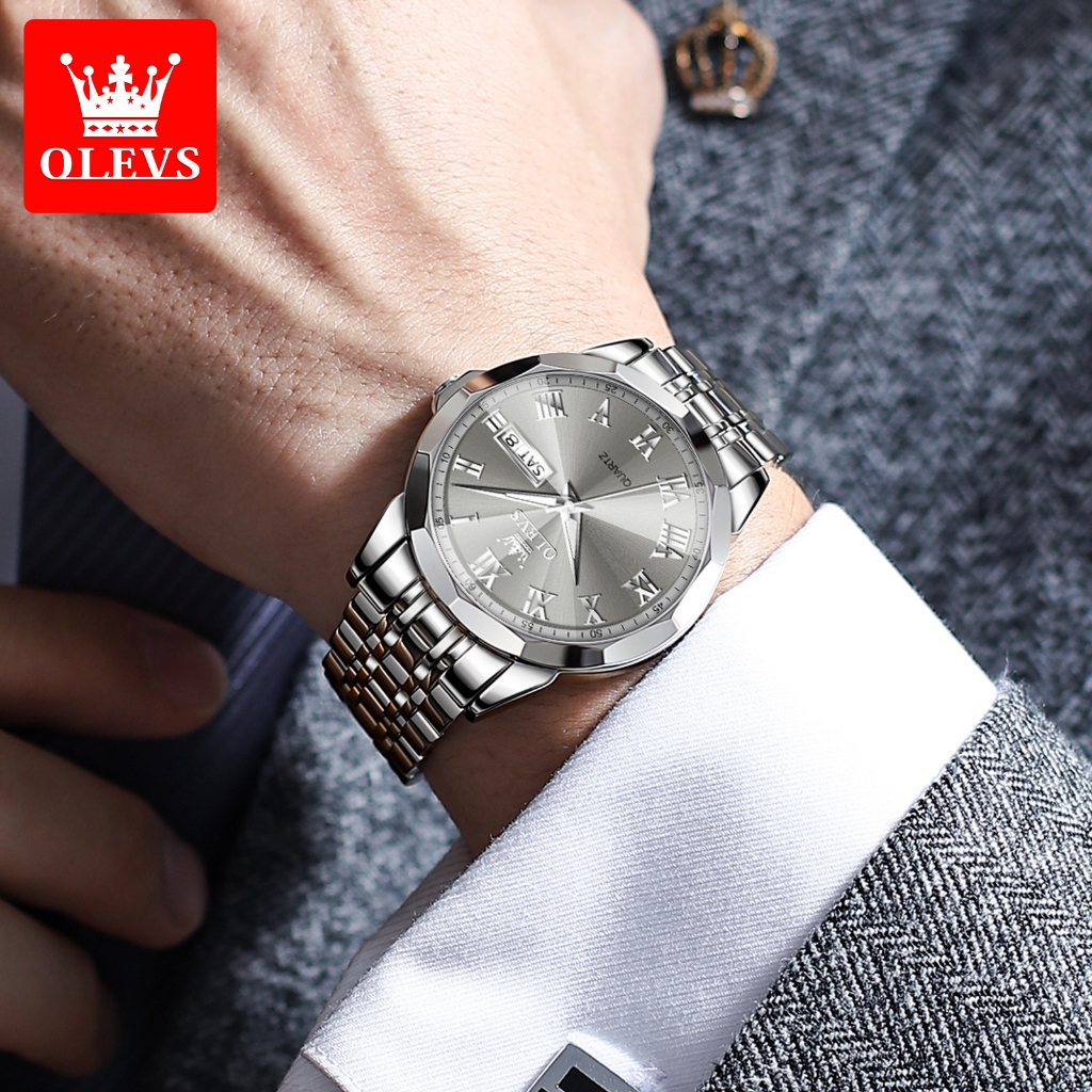 OLEVS Jam Tangan Pria Anti Air Original Analog Stainless Steel Keren Casual Jam Tangan Rantai Pria Men Watches 9990
