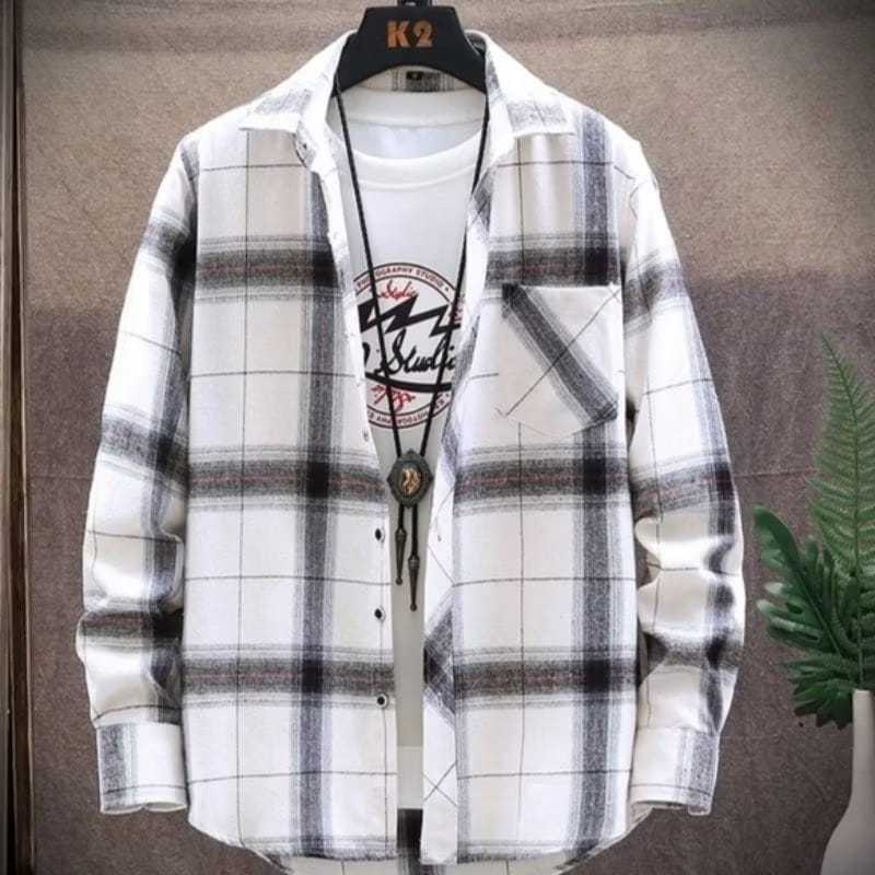 KEMEJA FLANEL VETERANO ATASAN PRIA WANITA KOTAK KOTAK GARIS LENGAN PANJANG BAHAN SUPER