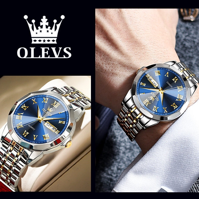 OLEVS Jam Tangan Pria Anti Air Rantai Analog Original Quartz Fashion Bisnis Men Watch Model 9990