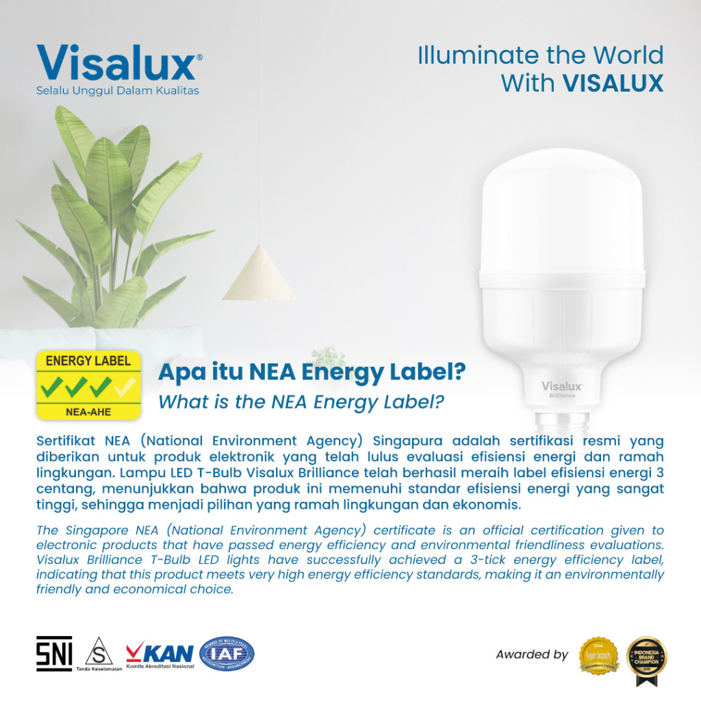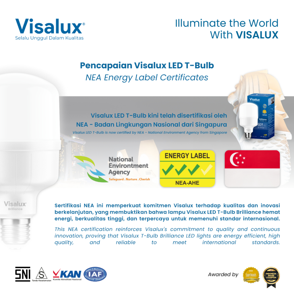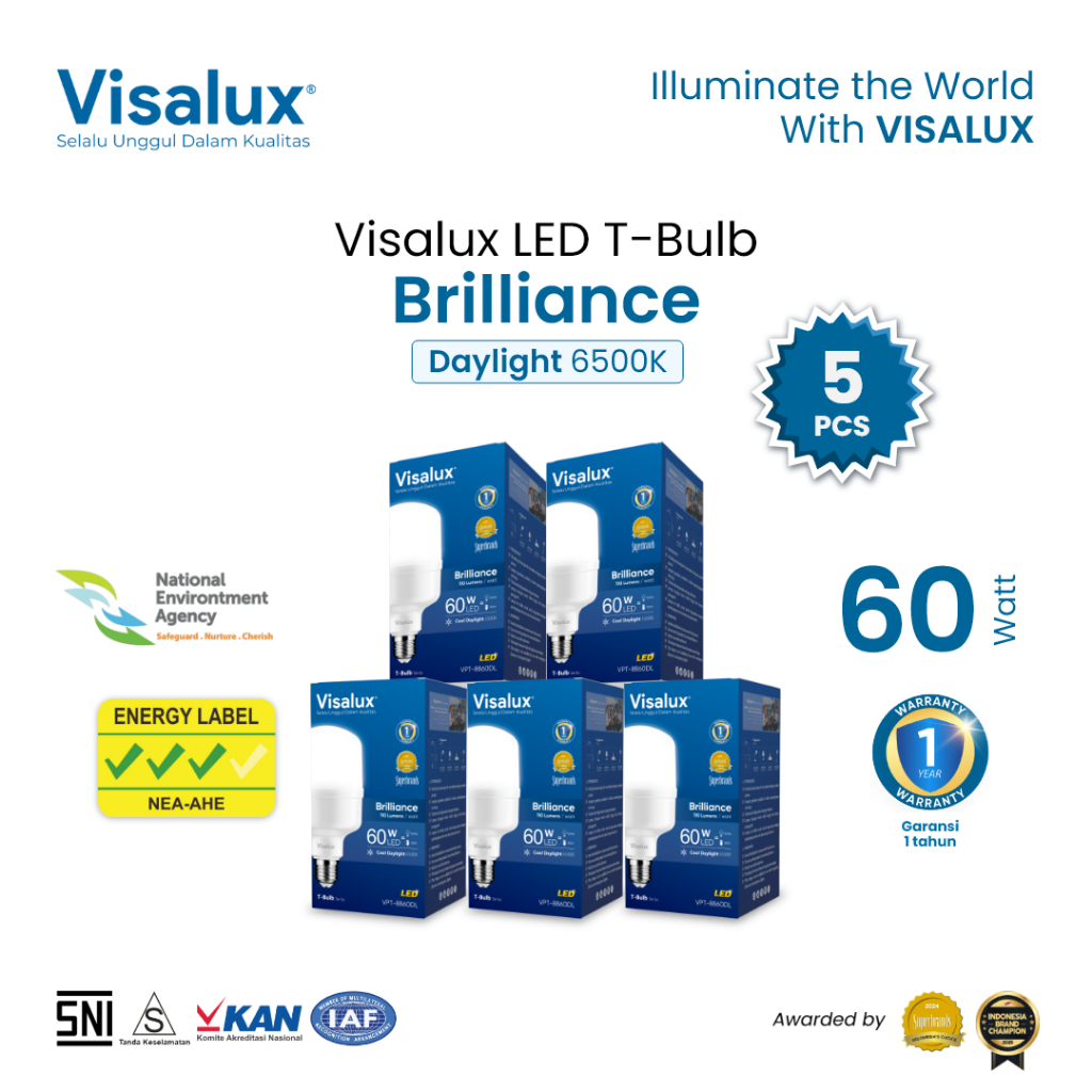 Visalux Lampu LED T-Bulb Brilliance 6500K Daylight Putih 60W - Bundling Paket 5 pcs (BRI-VPT8860DL)
