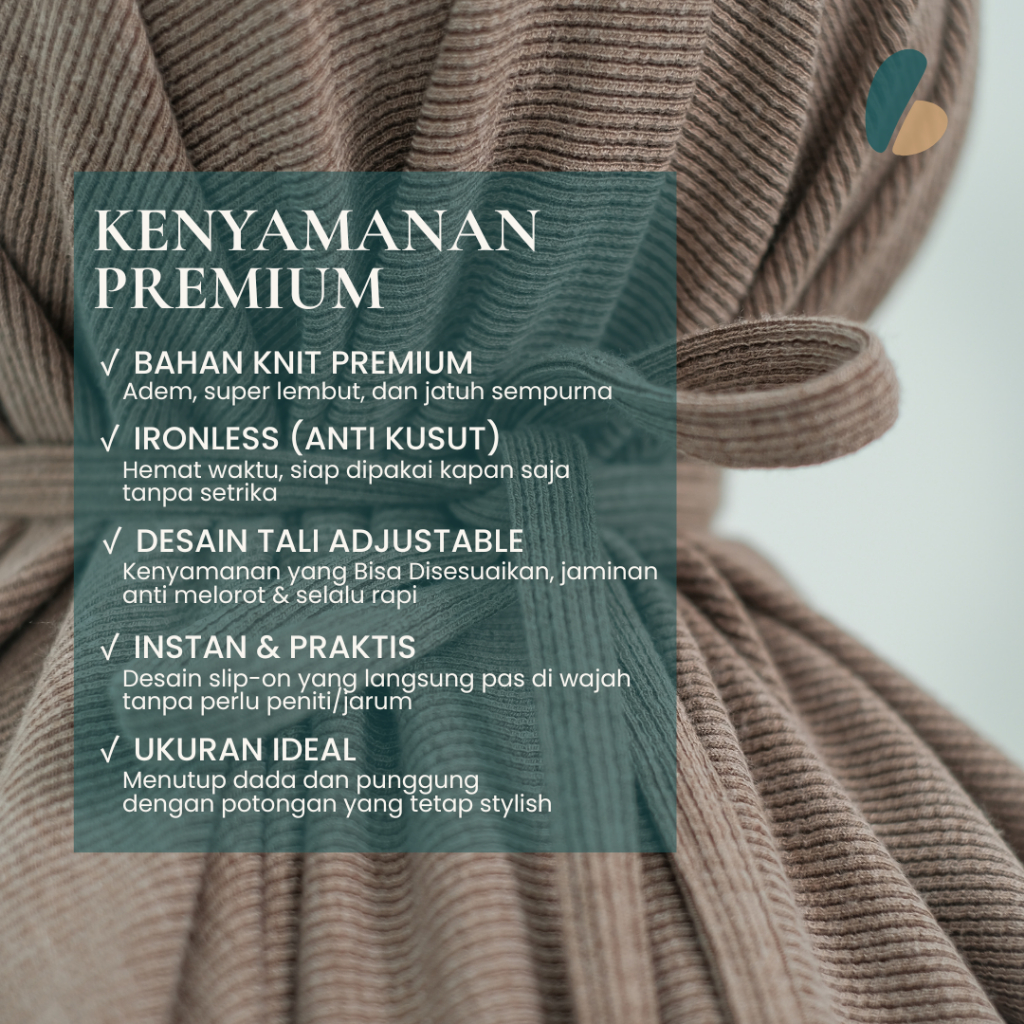Booga - Bergo Knit Tali Premium (Menutup Dada) - Jilbab Knit Kaos Anti Melorot - Hijab Daily