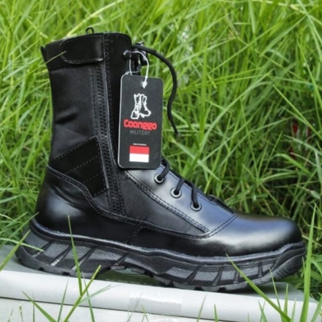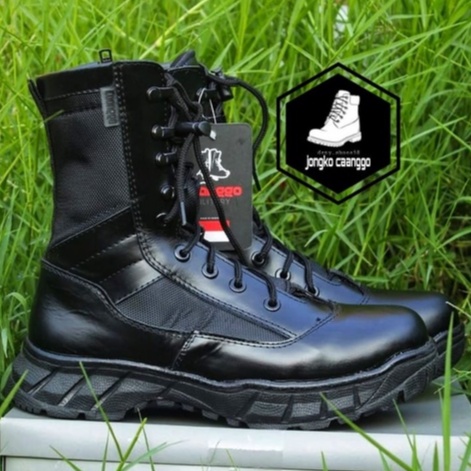 Sepatu PDL Jatah Polri TNI Kulit Asli Original CAANGGO Militery Hitam Tinggi 10 Inc Anti Slip