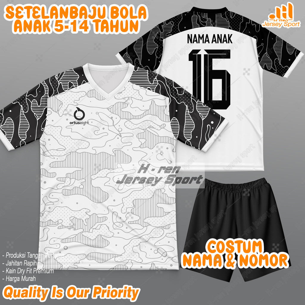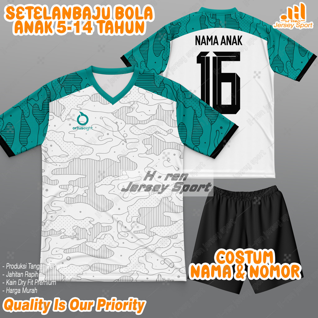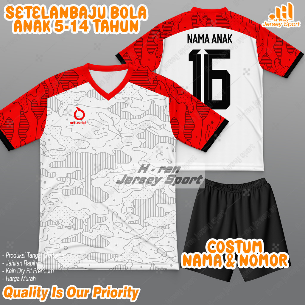 Costum Sablon Nama Nomor Setelan Baju Bola Jersey Anak Junior Terbaru Kaos Futsal Voly Sd Smp