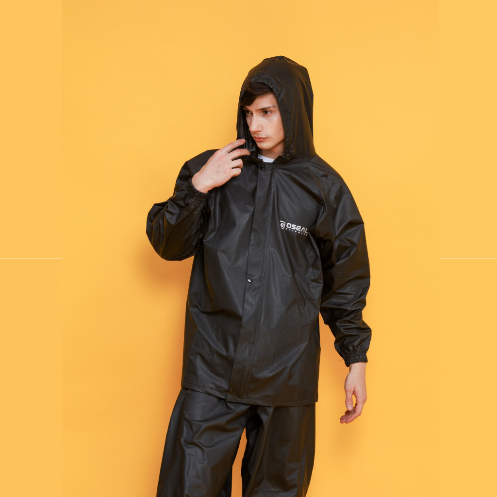 Jas Hujan OSEAL Original Mantel Raincoat Pria Wanita Dewasa Full Seal Hitam