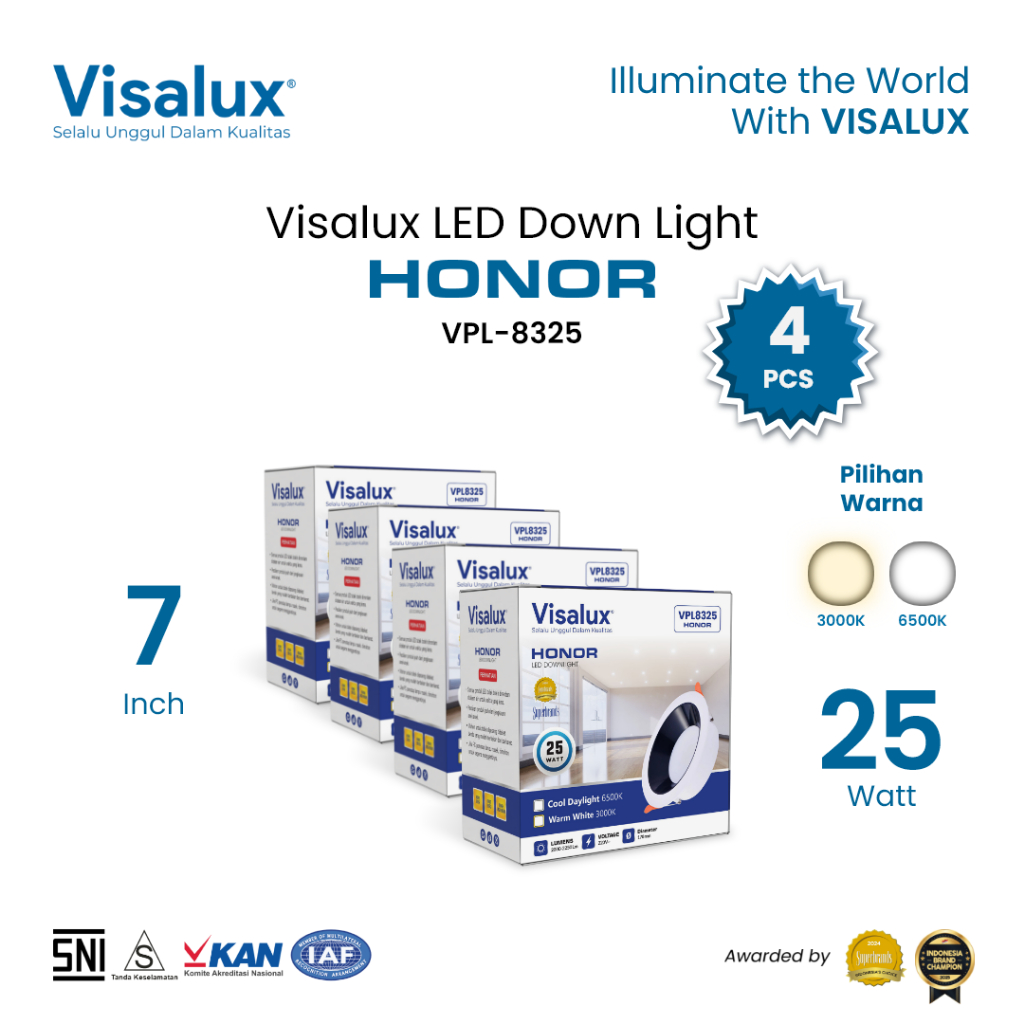 Visalux Honor LED Down Light Inbow 25W 7 Inch Round Bundling Paket 4 pcs - Lampu Plafon Rumah Panel Light Bulat 3000K / 6500K (HONOR-VS8325R)