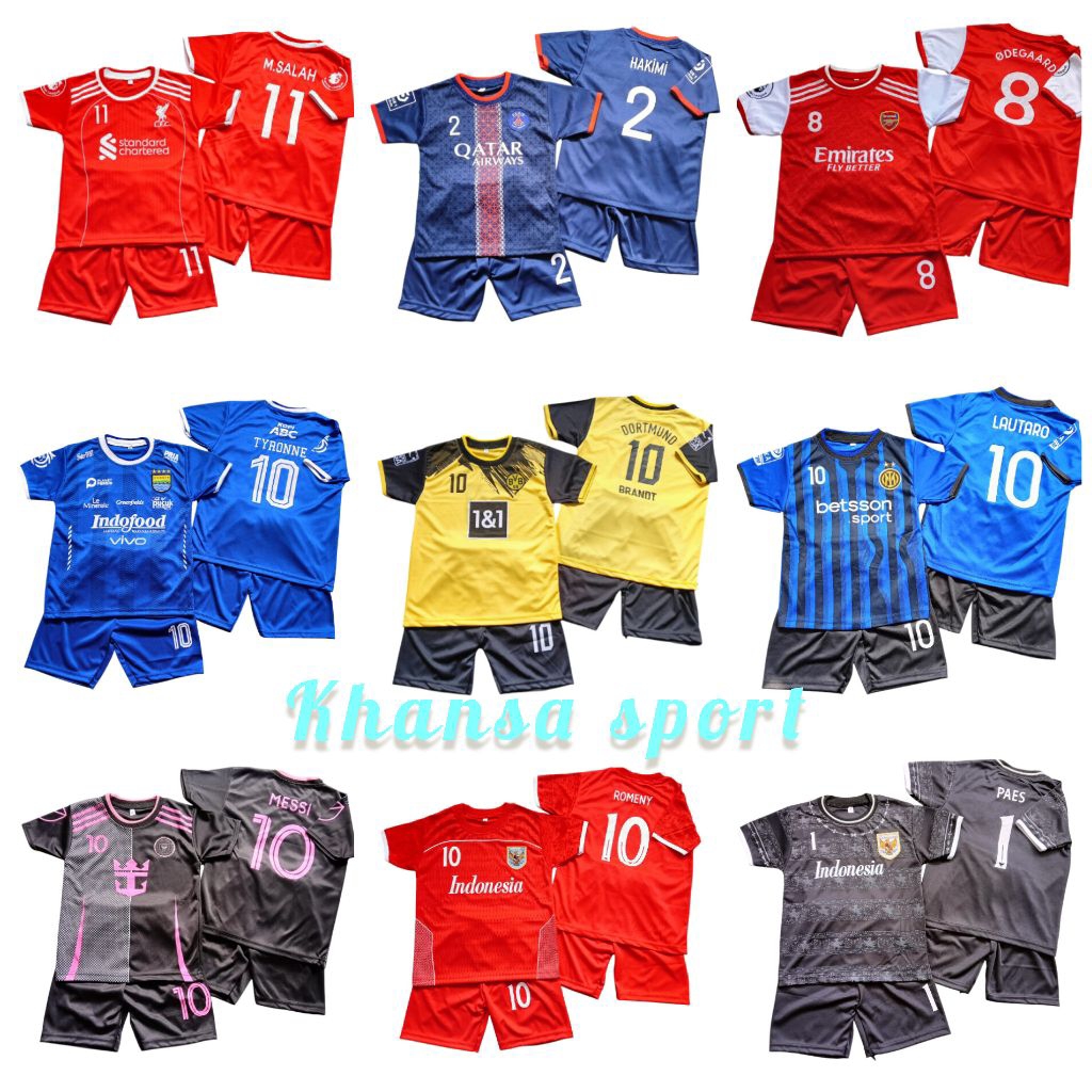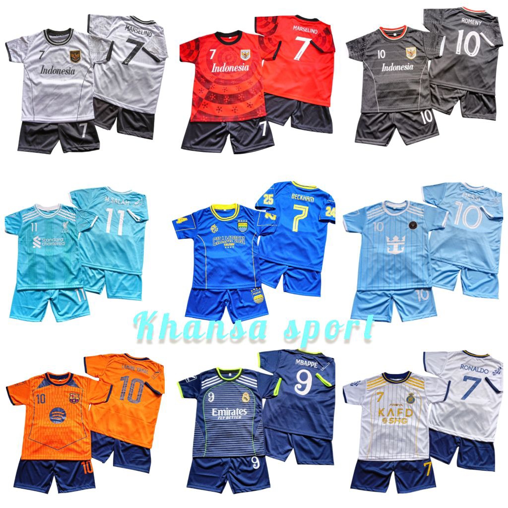Paket Hemat Isi 5 Pcs Setelan Baju Bola Anak Umur 1 Sampai 14 Tahun