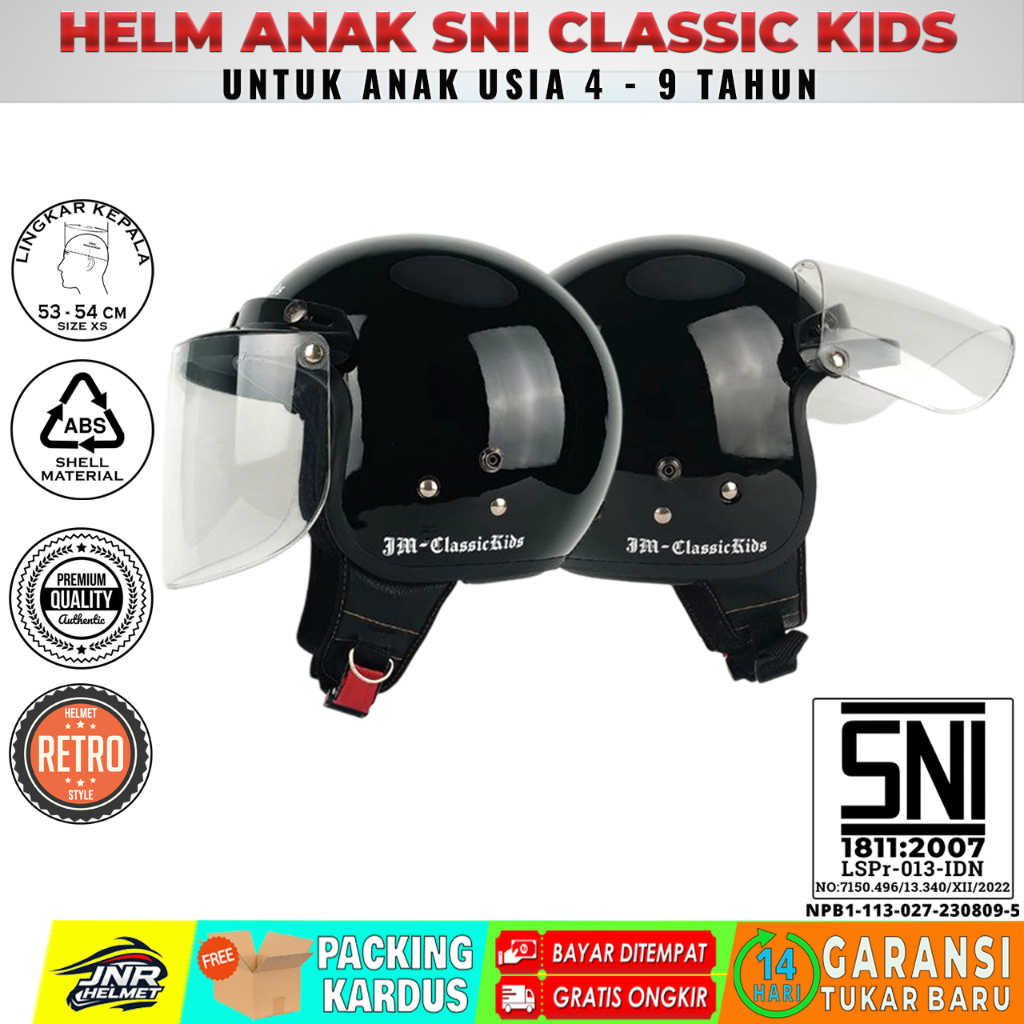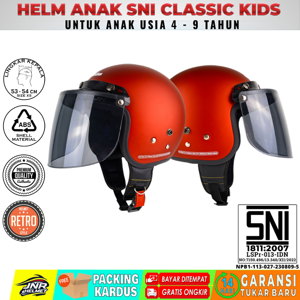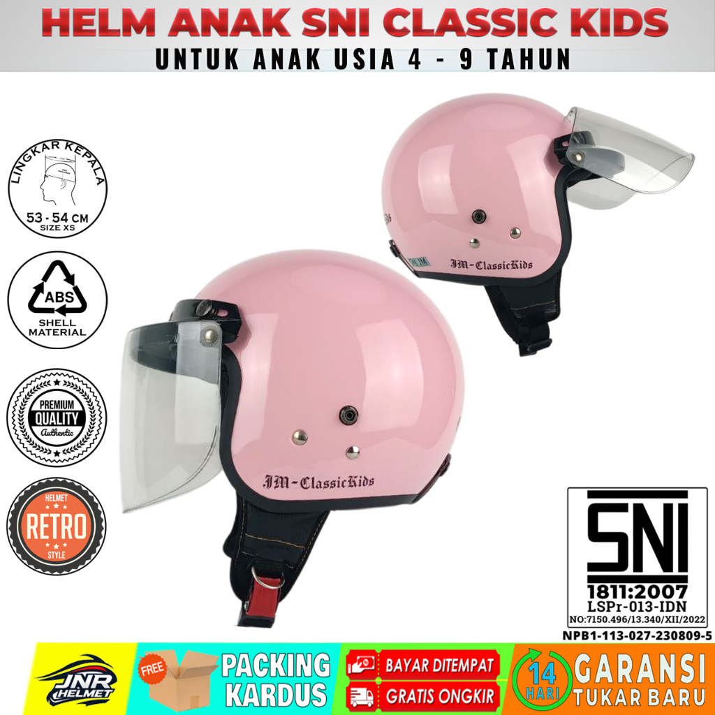 JM Helm Anak Laki Laki Perempuan Usia 4 5 6 7 8 9 Tahun Classic Kids Free Kaca Datar