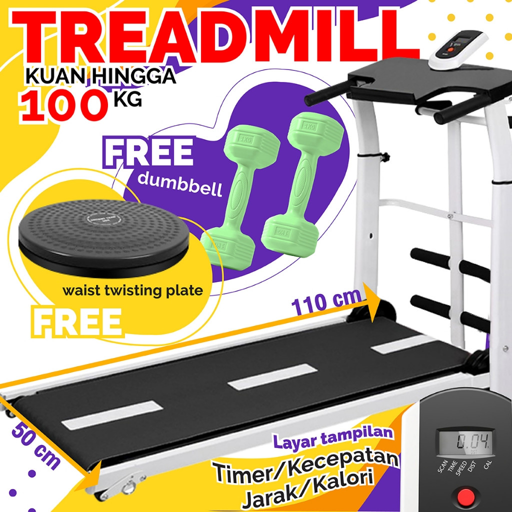 HTD SPORT Treadmill Lipat Manual Multifungsi Tanpa Listrik Portable Fitness Gym FREE DUMBBELL 2PCS
