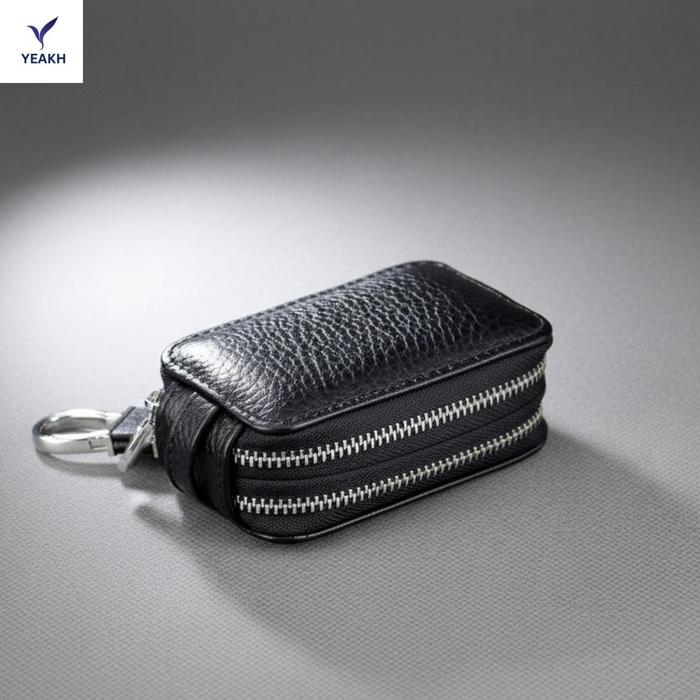 YEAKH DOMPET STNK MOBIL MOTOR KULIT ASLI - DOUBLE ZIPPER STNK CAR AKSESORI INTERIOR MOBIL DENGAN DESAIN GANDA DAN BAHAN BERKUALITAS - HITAM