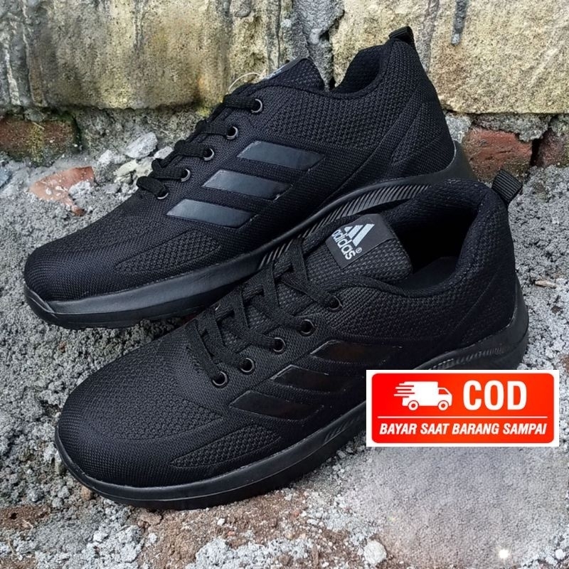 Sepatu Sneakers Fullblack Sepatu Pria Wanita Sekolah Hitam Polos Sepatu Kerja