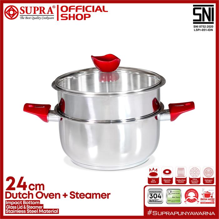 Promo SUPRA Panci Stainless Dutch Oven dan Steamer 24 Cm - Red - Merah Elegan